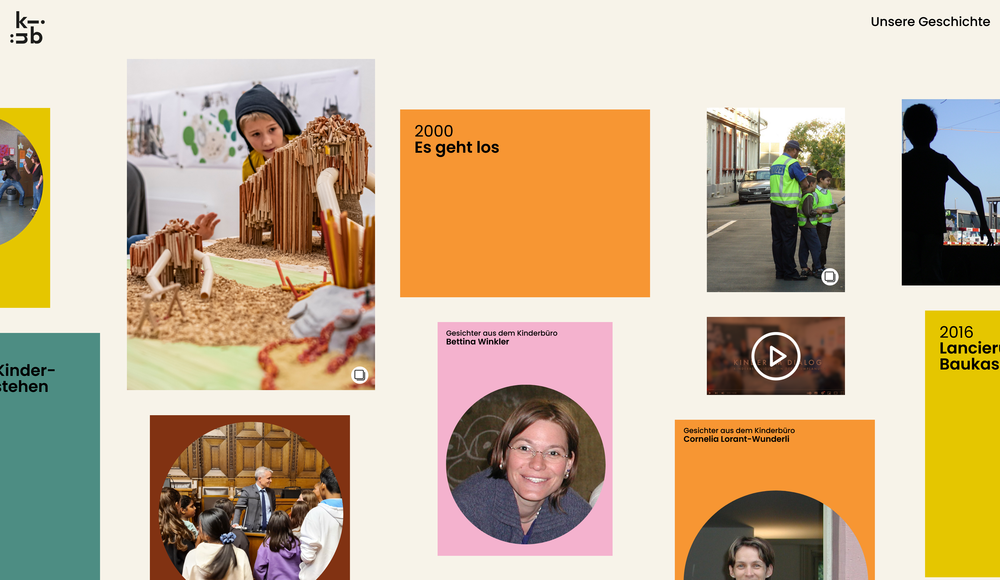 Website implemented as part of Karlie GmbH, where users explore the history of Kinderbüro Basel through interactive panning across tiles.